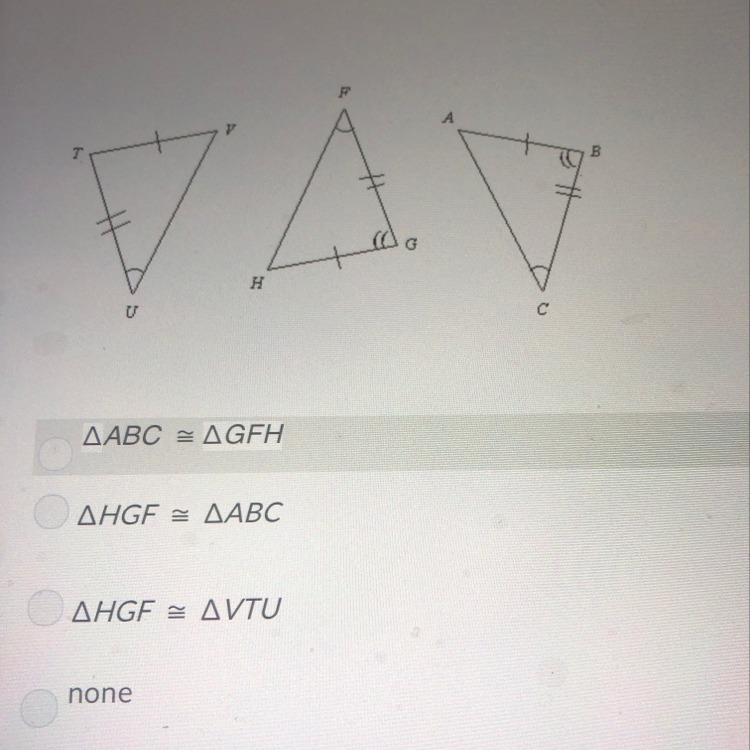 In the given figure ΔABC and ΔHGF have the pair of two corresponding angles and the included sides are congruent.