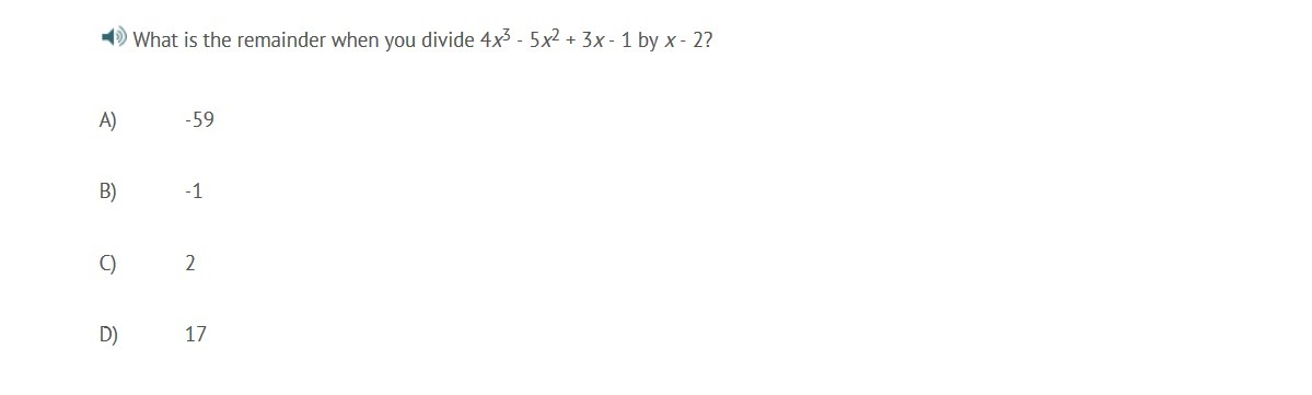 For the function whose graph is shown, the correct formula for the function would be option A; y = -2x+3.