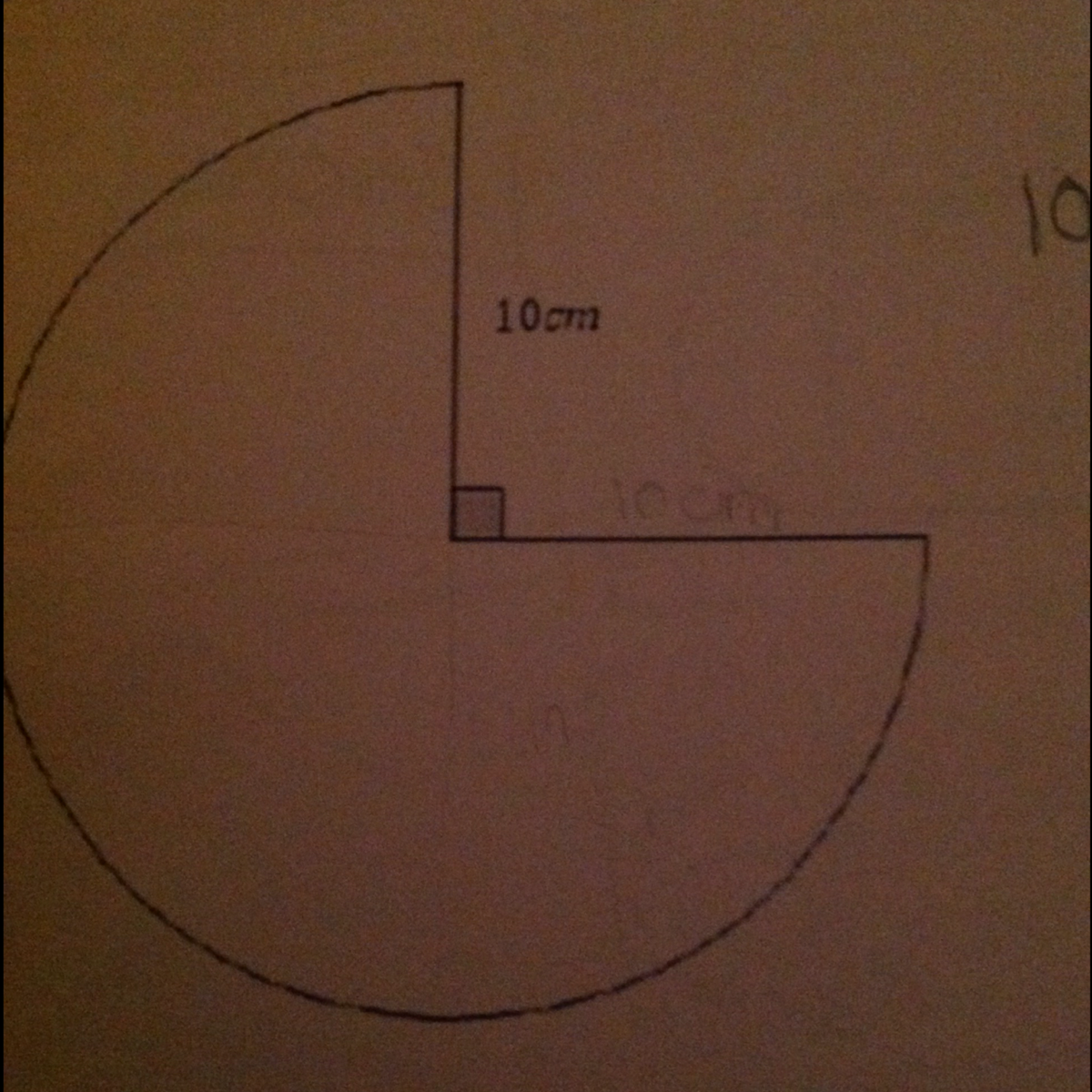 The way we approach a question like this, is by looking at what portion of the circle we actually have to calculate the area of. We know that a circle is a shape that goes 360 degrees around a point. Therefore we know that, for example, a semicircle, or half a circle, would cover half the amount of degrees. This is important, because as well as covering half the number of degrees, it also covers half the area. For the figure in your picture, we are told that the portion missing from the circle is 90 degrees (shown by the right angle symbol in the center).