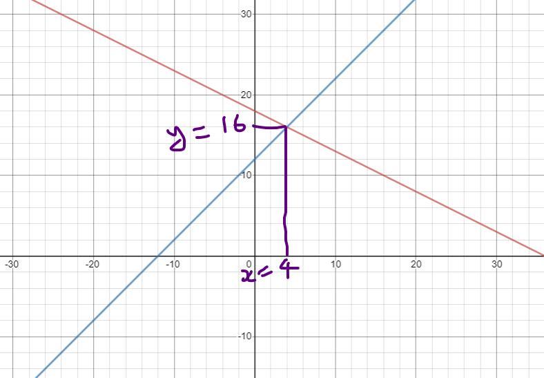 x + 12 = y.....................................................................(2)