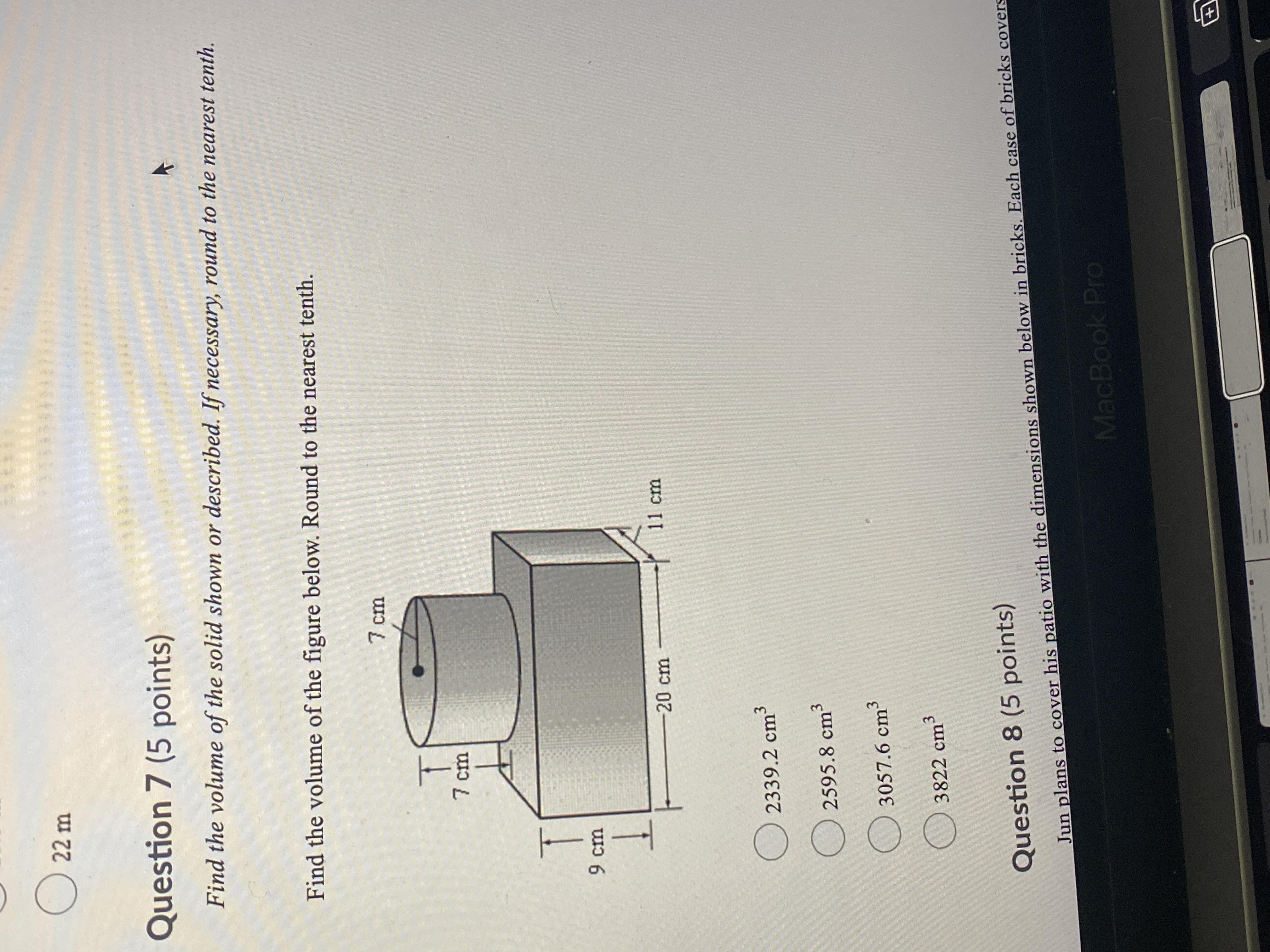 Find the volume of the solid shown or described. If necessary round to the nearest tenth. Find the volume of the figure below. R