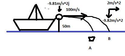 So we can consider the shell to move at a constant speed if there was no tailwind, so we can find the distance from the ship to point A to be: