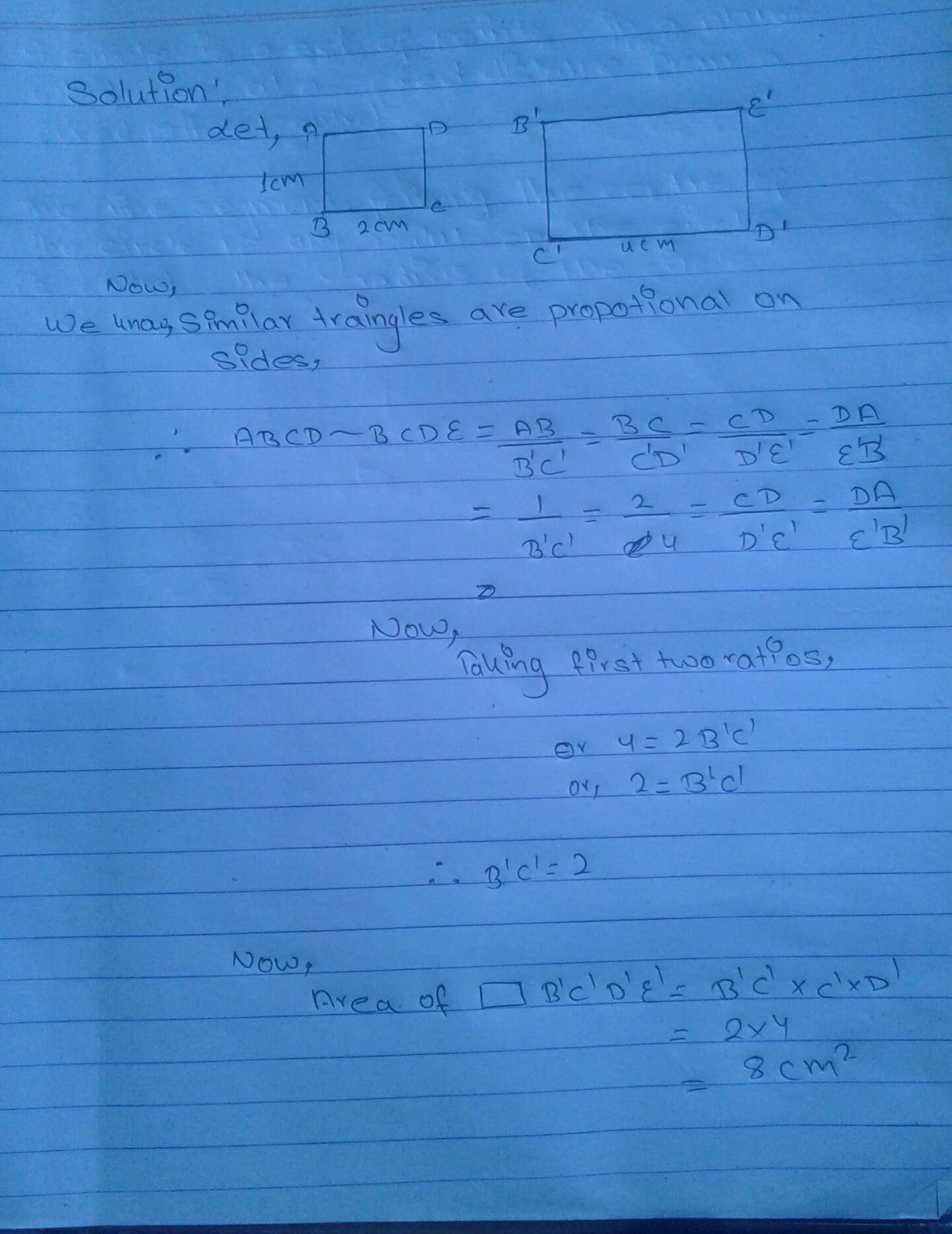 8cm because the larger rectangle is twice the size of the smaller one which makes the other length 2cm. 2(4) is 8