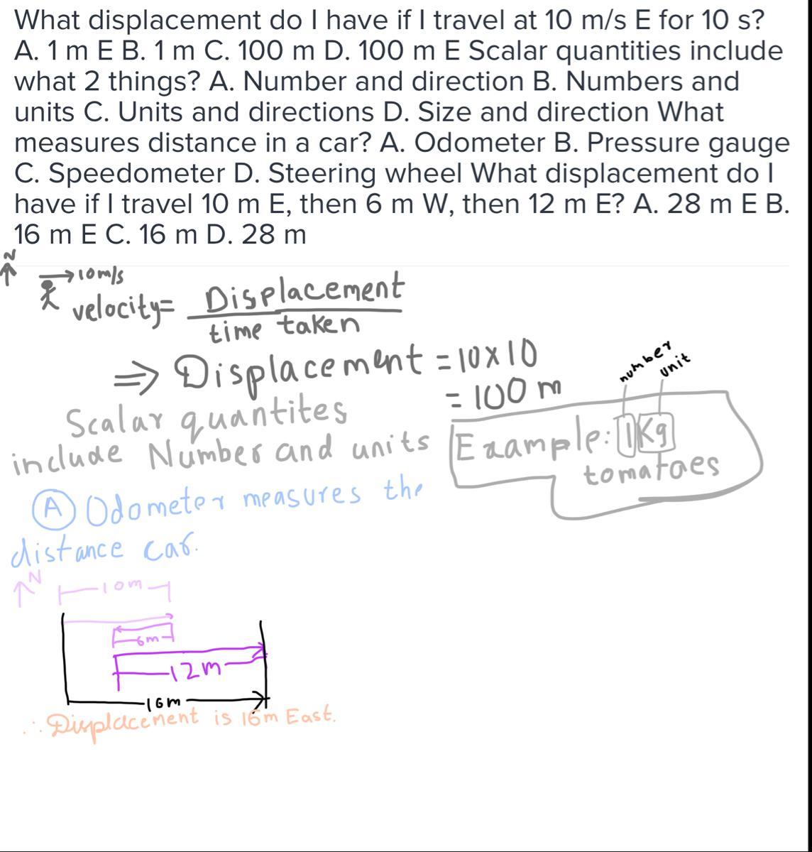 B is located on a positive location, 15m from the starting point A. Hence, since E is located a positive distance 10m from A, the difference becomes 10 - 15 = - 5.0 m
