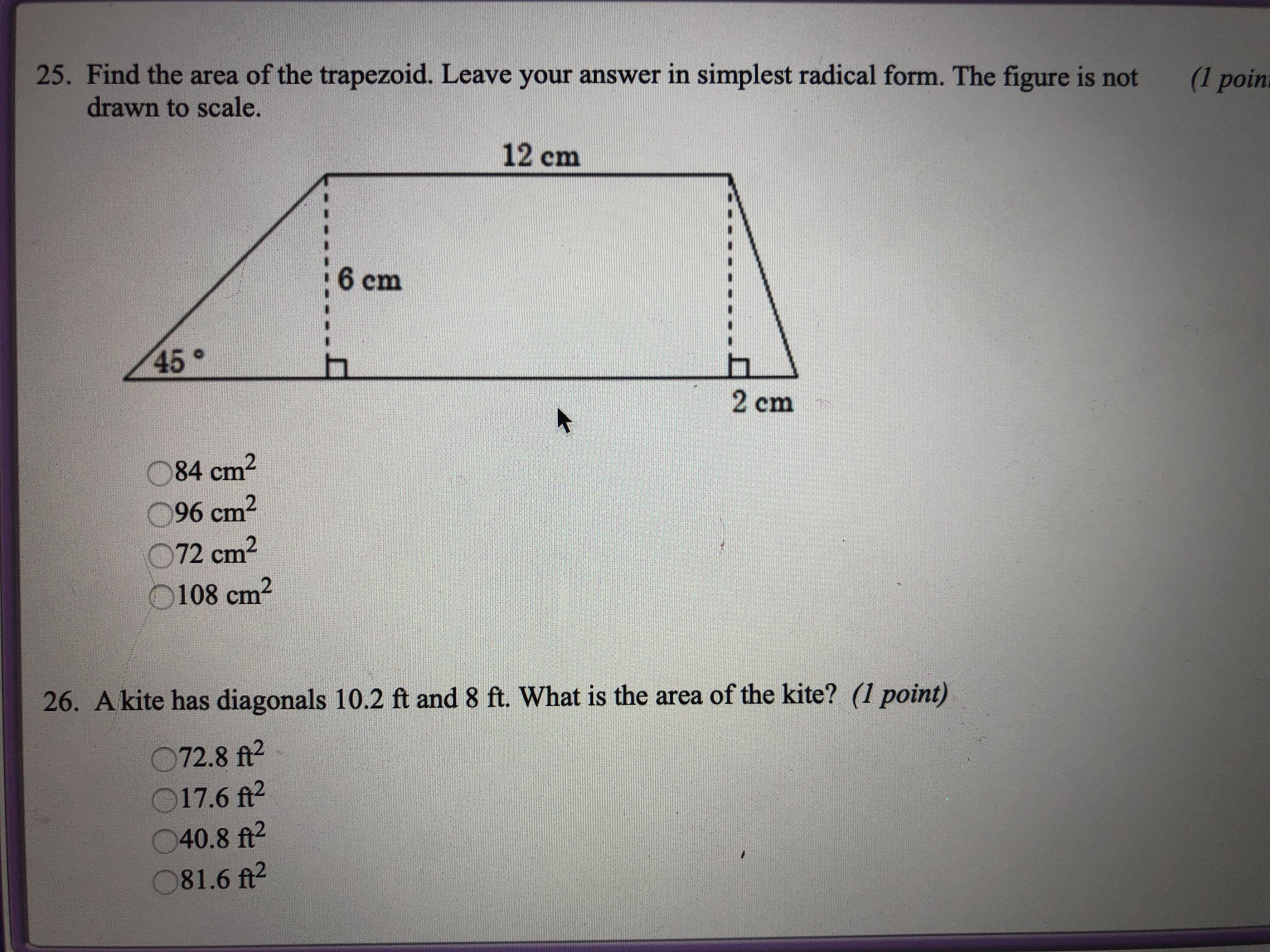 25. The area of the trapezoid is 96 cm² ⇒ 2nd answer