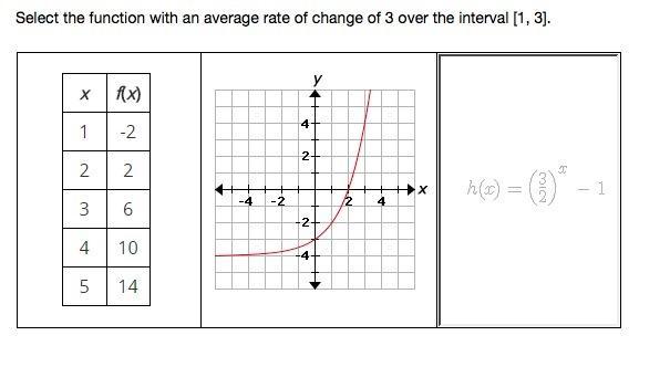 Since only one of the function has an average rate of change of 3 over the given interval,