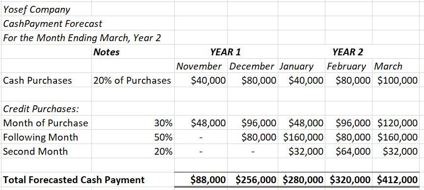 The following month payment to be included for month of March Cash Payment would be for the previous month which is February and will be calculated as follows;