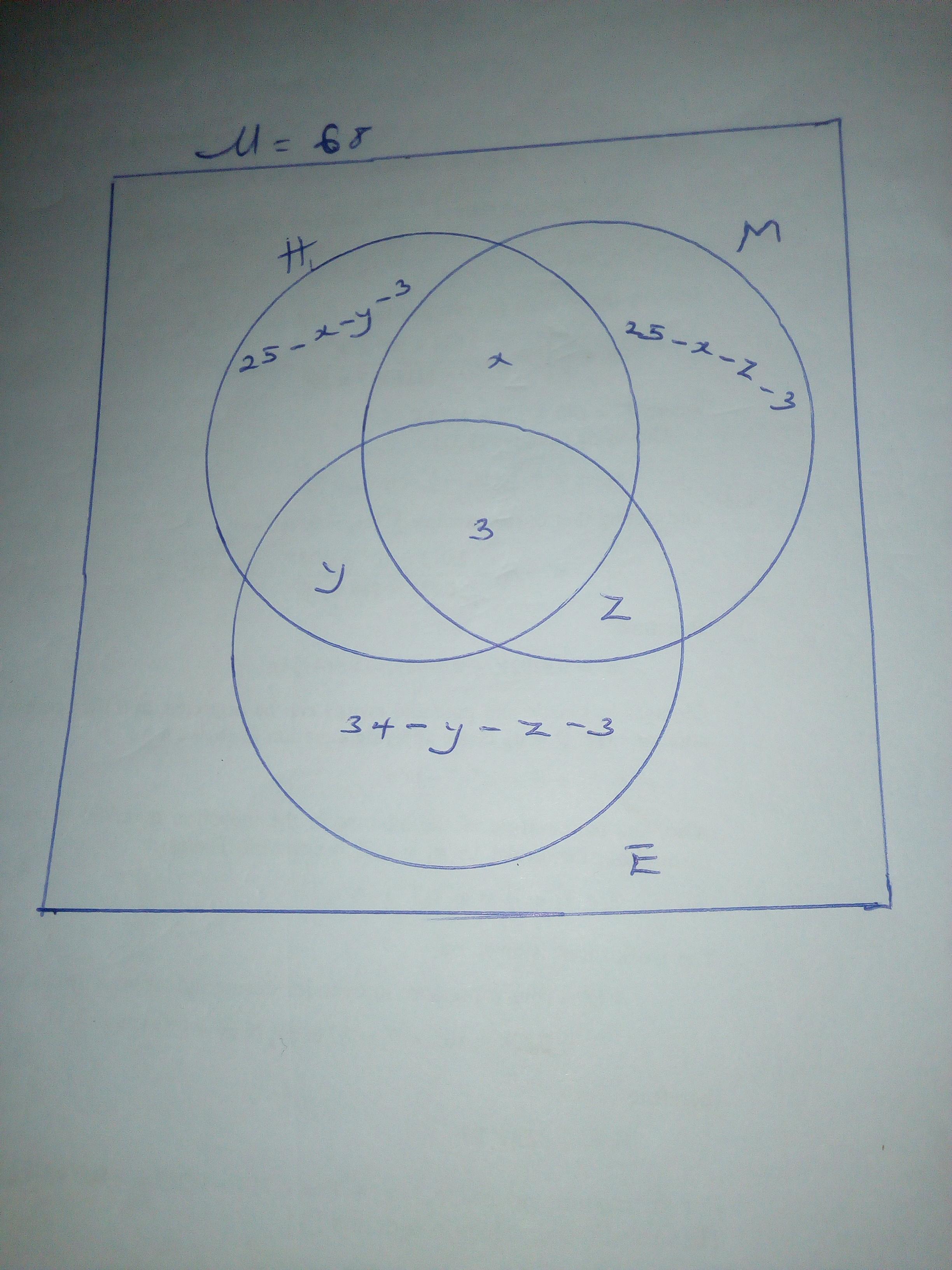 Total = 25 - x - y - 3 + 25 - x - z - 3 + 34 - y - z - 3 + x + y + z + 3