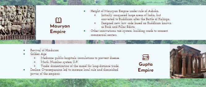 2. Mauryan Rock Edicts: The Rock Edicts were law codes that were displayed in public places. These were important because they ensured that the rule of law was maintained. A lawful society is better organized and more peaceful, which allows it to reach a higher level of development.