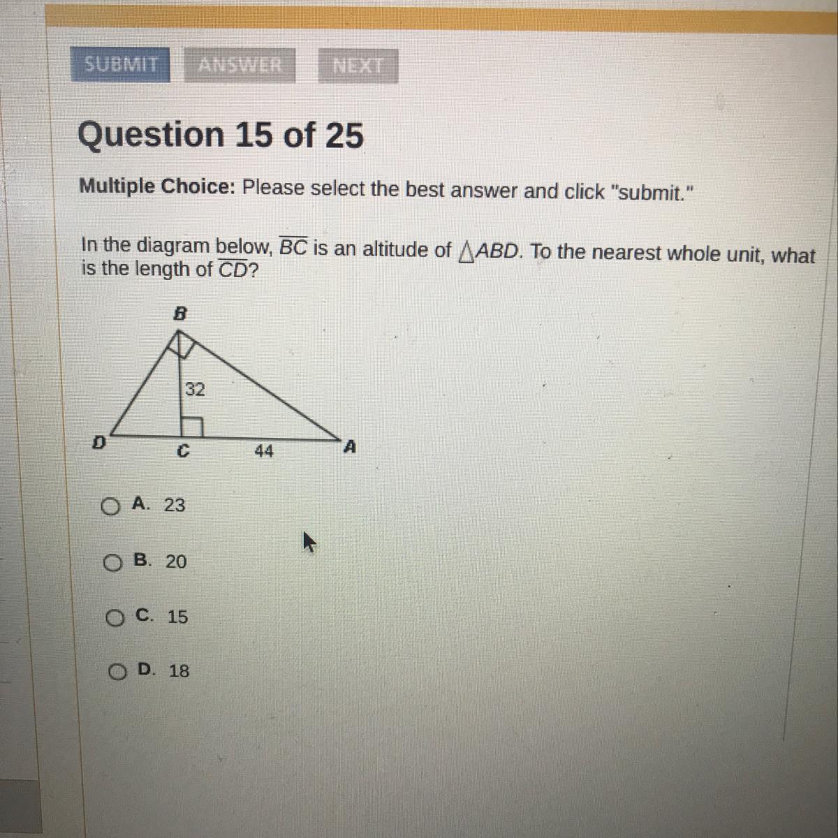 A summer camp counselor wants to find a length, x, in feet, across a lake as represented in the sketch above. The lengths represented by AB, EB, BD and CD on the sketch were determined to be 1800 feet, 1400 feet, 700 feet, and 800 feet, respectively. Segments AC and DE intersect at B, and the angle AEB and the angle CBD have the same measure. What is the value of x?