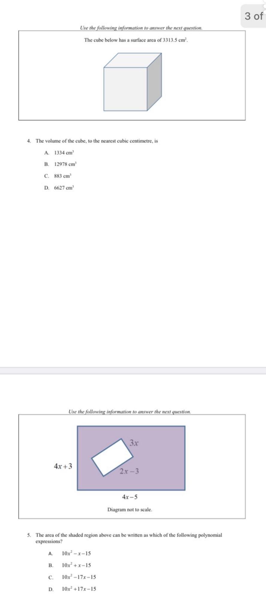 5. The area of the shaded region above can be written as which of the following polynomial expressions?