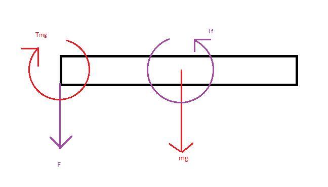 The Force must then be located at the other end down to make a movement opposite the Torque in the center of mass.