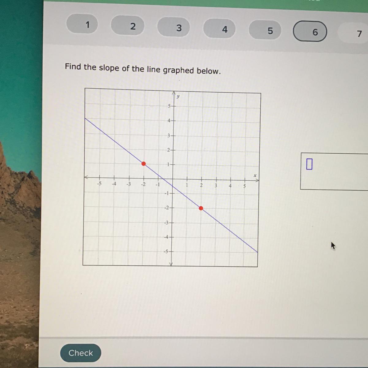 The slope is 5/1. This is because it goes up 5 units and right one unit. This corresponds with the fact that slope is the rise/run on a line.