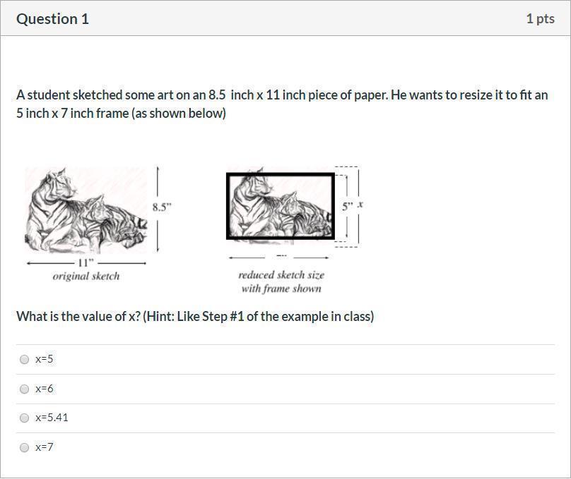 ORIGINAL/NEW = 11"/7" = 8.5"/x