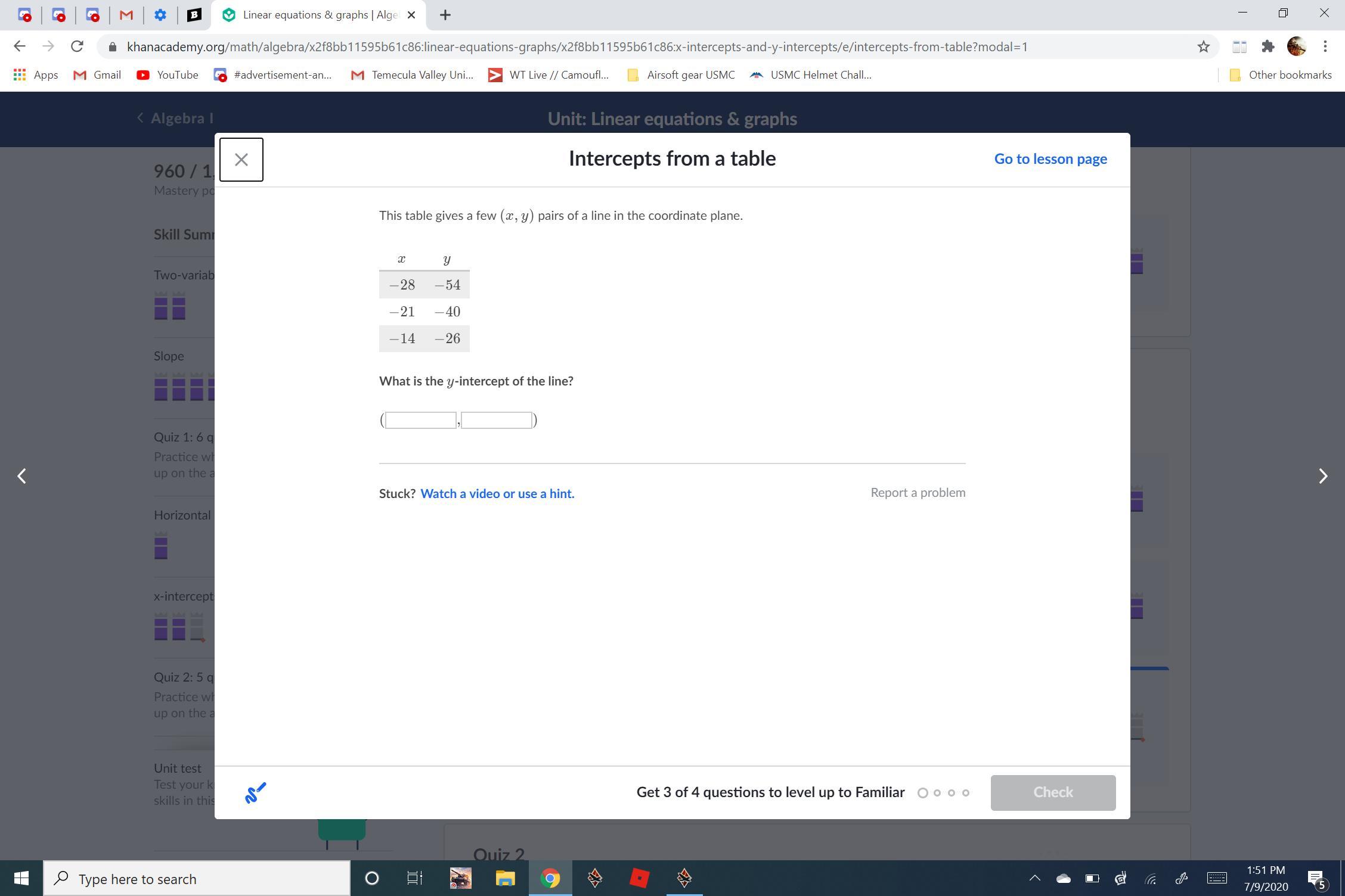 y = -3x-5