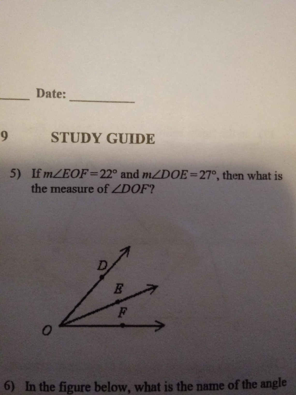 note that ∠DOF = ∠DOE + ∠EOF = 27° + 22° = 49°