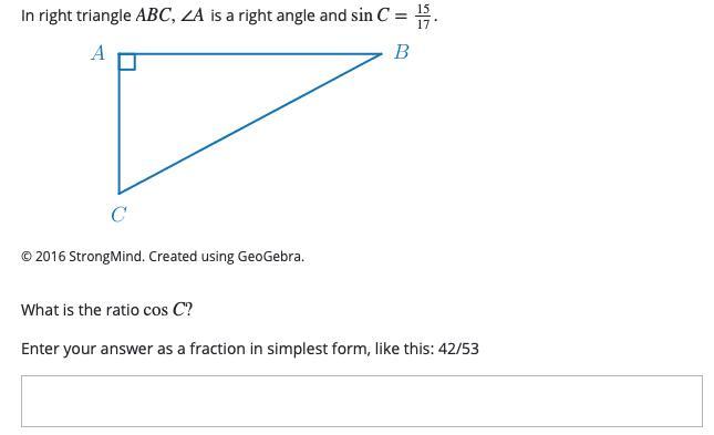 AB represents the opposite side of the right angle triangle. if Sin C = 15/17, it means that