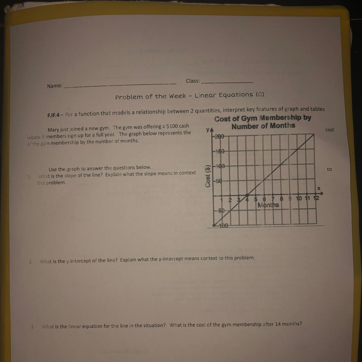 Part 3) What is the linear equation for the line in this situation? What is the cost of the gym membership after 14 months