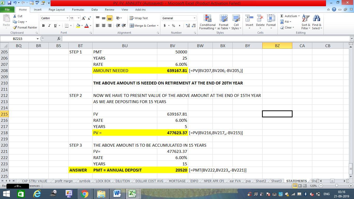 Hence, use FV function in Excel amount after down payment = $209,461.24