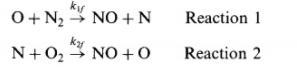 d[NO] / dt = ![k_{1f} [O] [N_{2}] + K_{2f} [N][O_{2} ] + K_{3f}[N][OH]](https://tex.z-dn.net/?f=k_%7B1f%7D%20%5BO%5D%20%5BN_%7B2%7D%5D%20%2B%20K_%7B2f%7D%20%20%5BN%5D%5BO_%7B2%7D%20%5D%20%2B%20K_%7B3f%7D%5BN%5D%5BOH%5D)