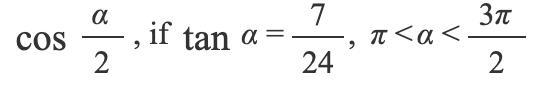 if π<α<3π/2 , then α has to lie in quadrant III where cosine is negative. so cos(α)= −24/25