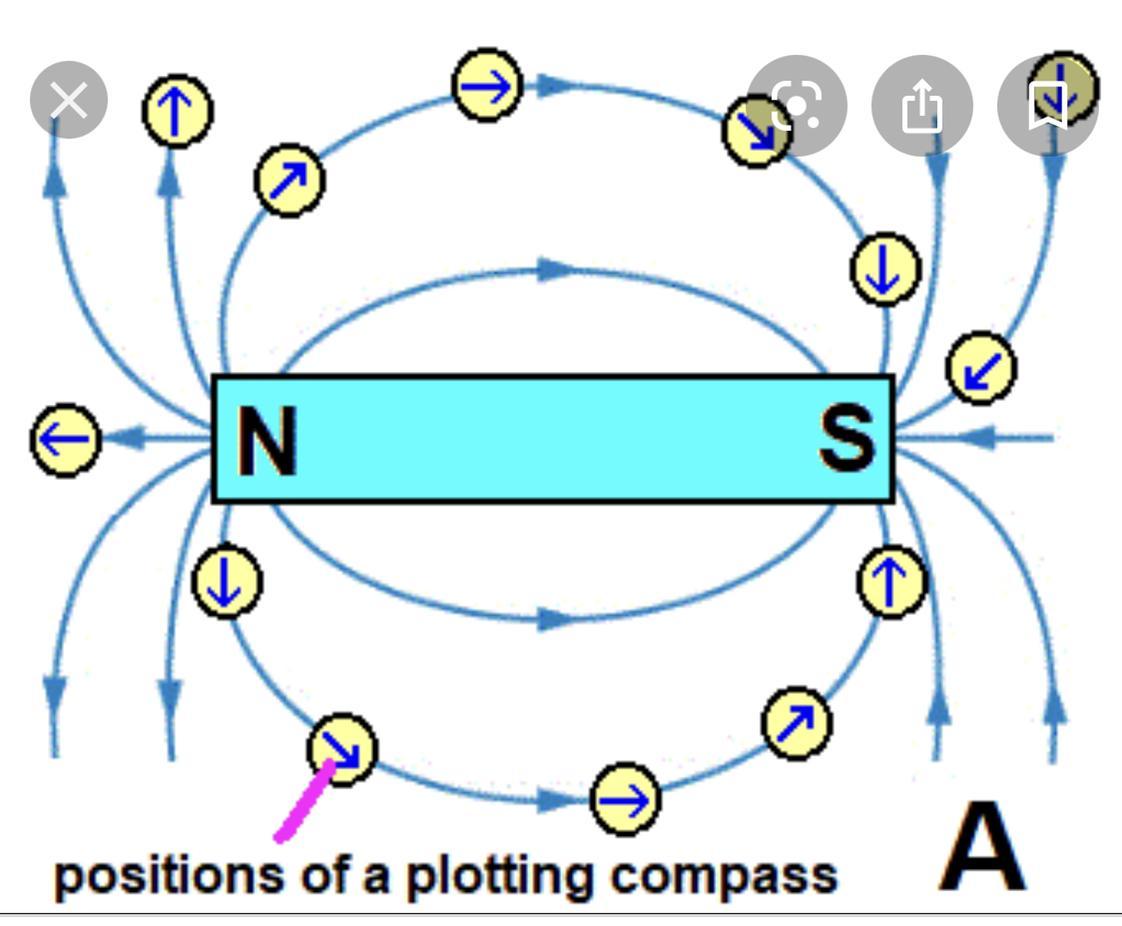 The north arrow of the compasses will all point to the south since opposite poles attract. I have put an example picture below.