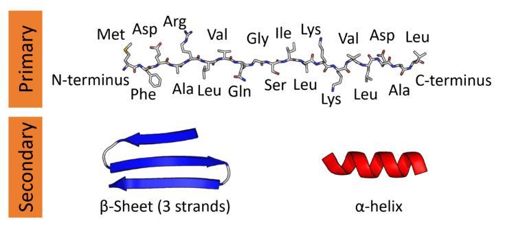 The order of the amino acids is the primary structure of proteins. - true. The amino acid sequence linked together by peptide bonds is the polypeptide sequence, which then forms increasingly complex structures when folded.