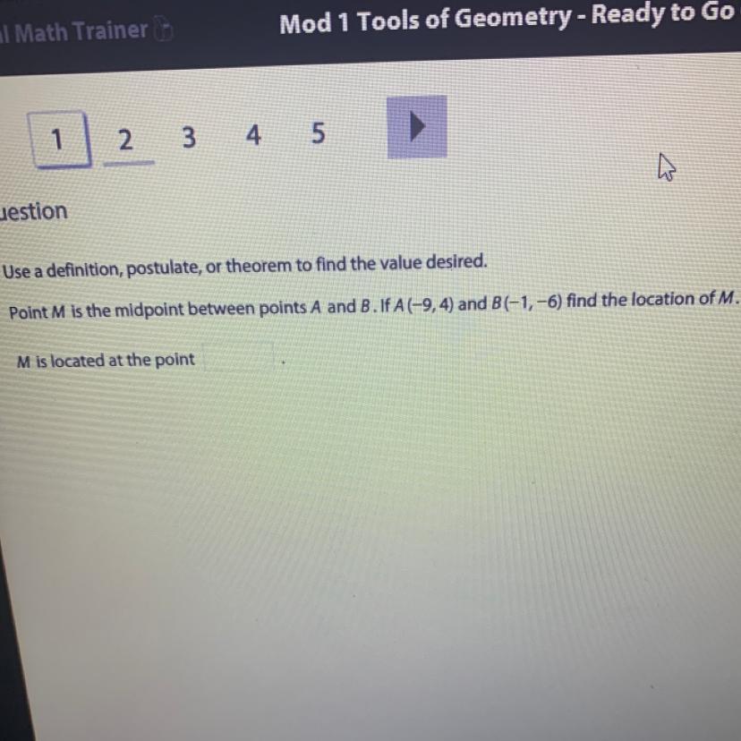 Hence, the midpoint M will be located at (-5, -1).