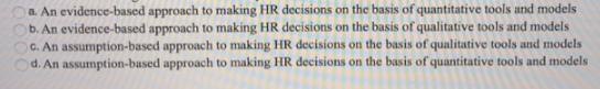 d. An assumption based approach to making HR decisions on the basis of quantitative tools and models.