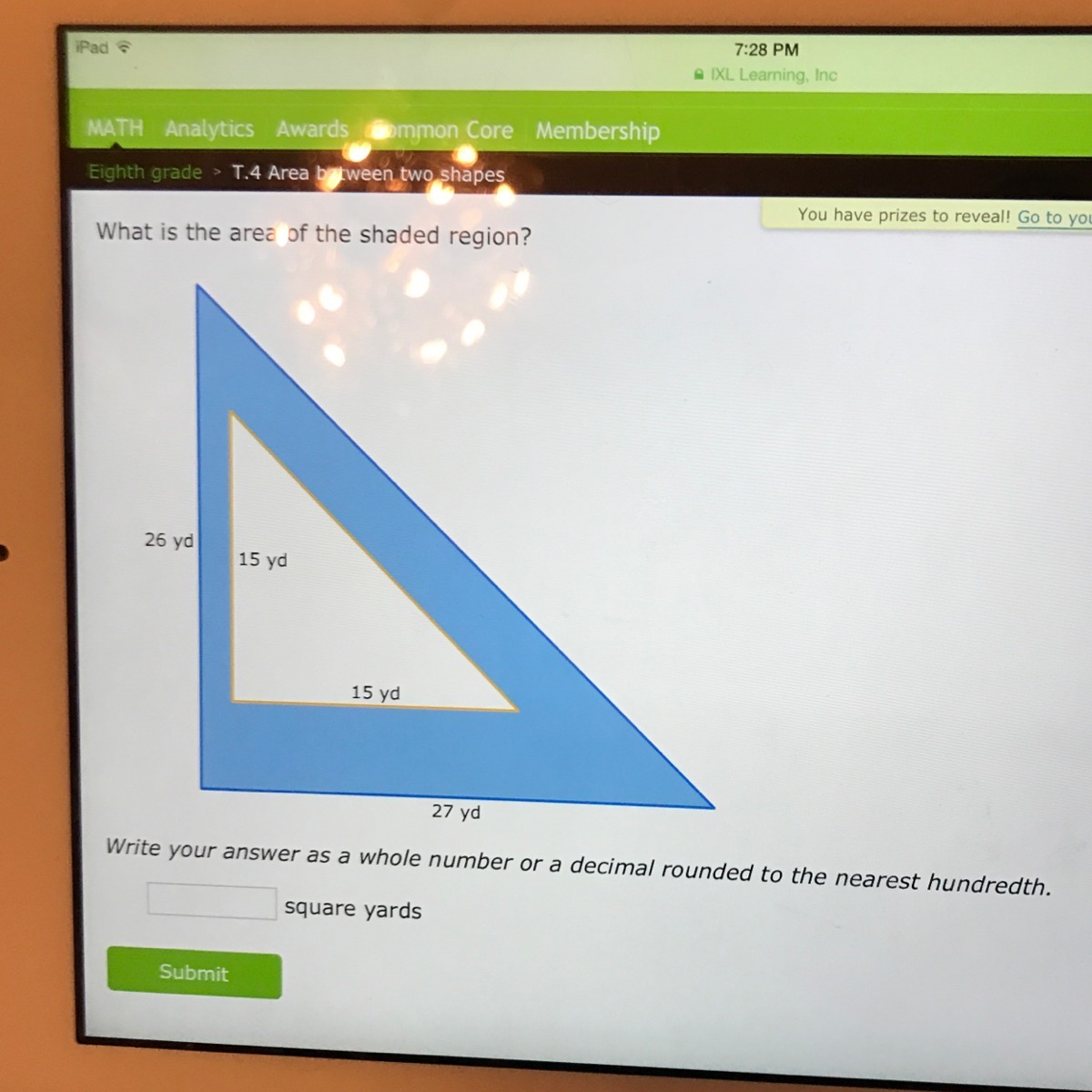 So this is pretty simple. What you have to do is calculate the area of both triangles and subtract the two.