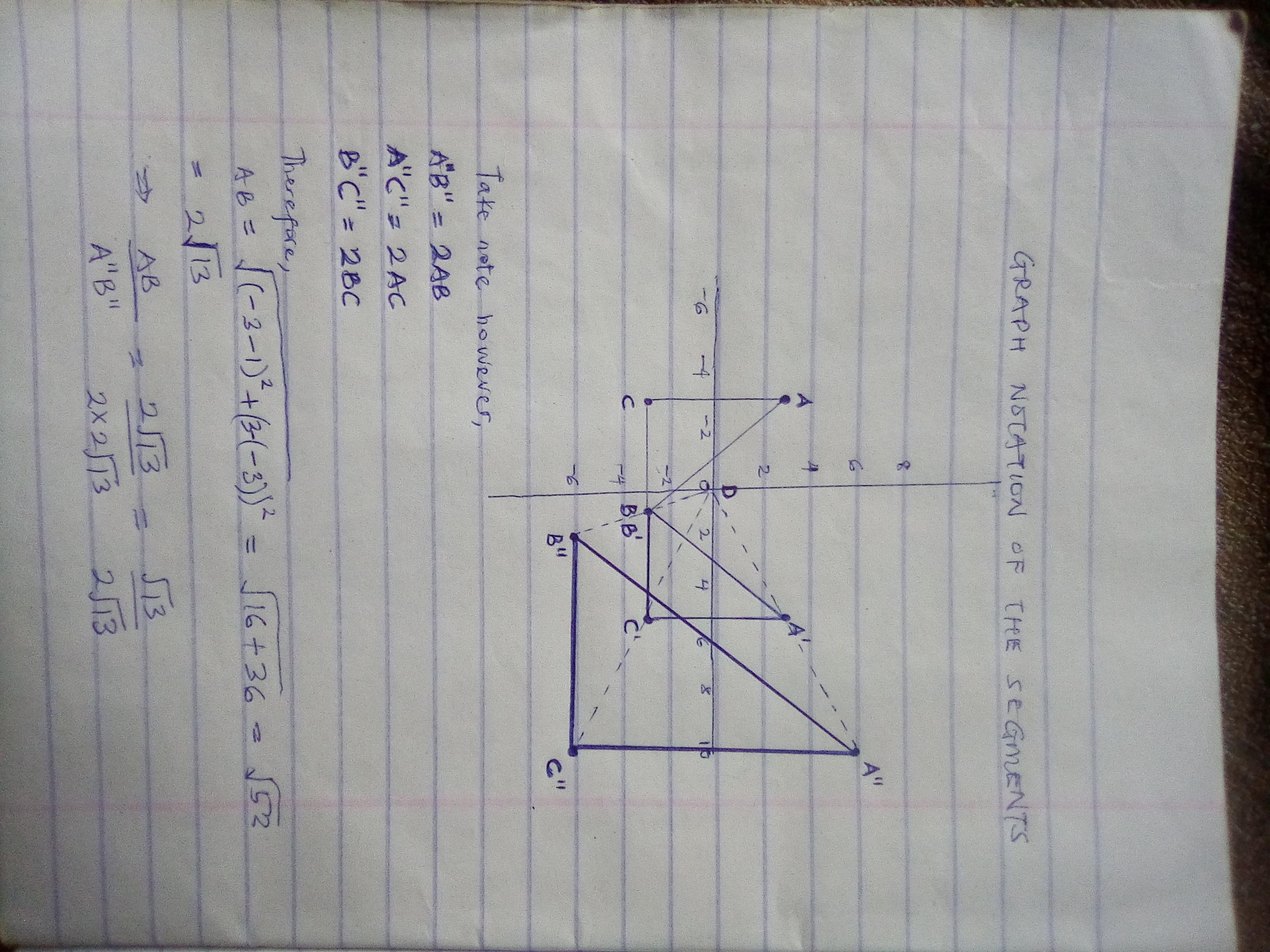 Answer: Segments AB / A"B" = √13 / 2 x √13