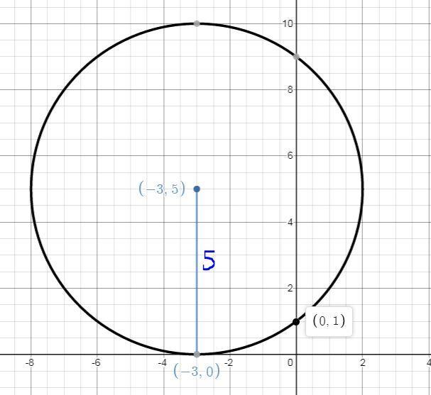 Given : The center of a circle is at A(-3,5) and has a radius of 5.