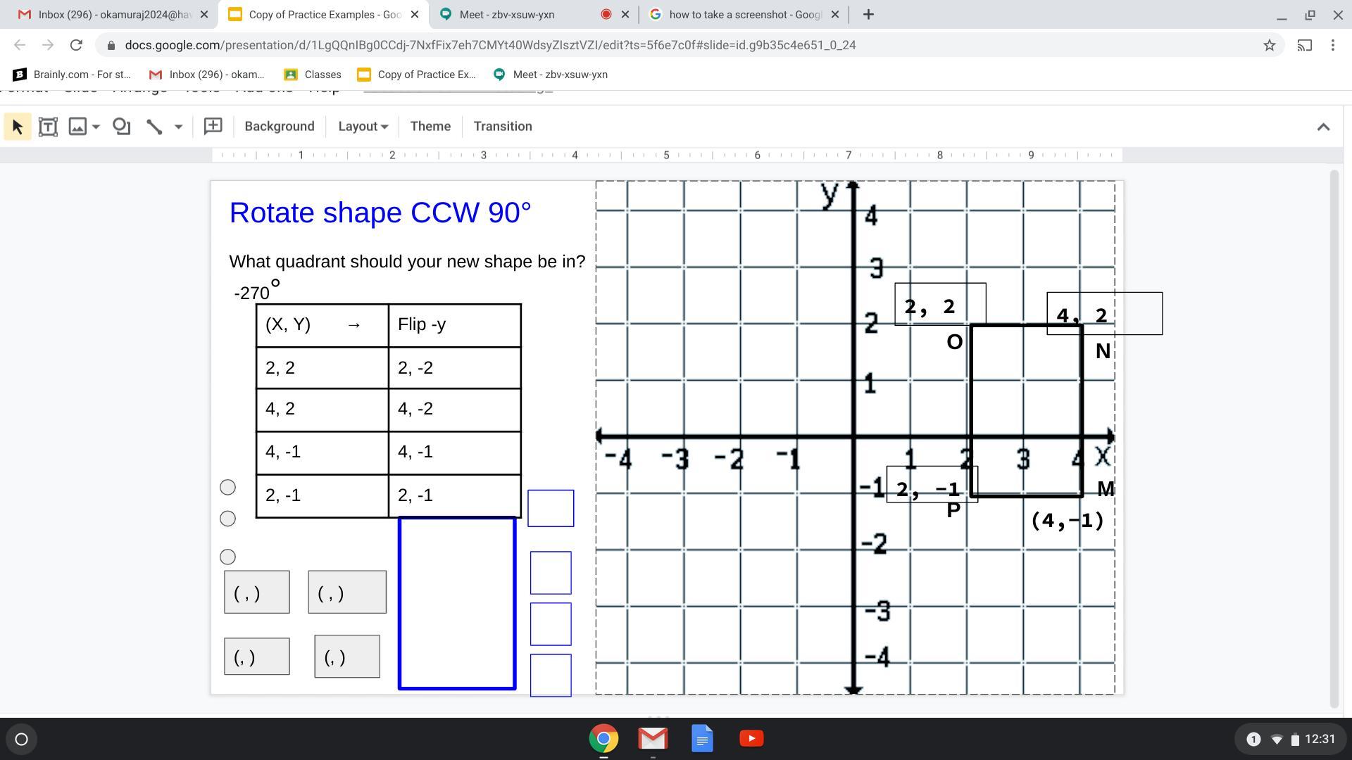 CCW 270 degrees (2,-2) (2,-4) (-1,-2) (-1,-4)