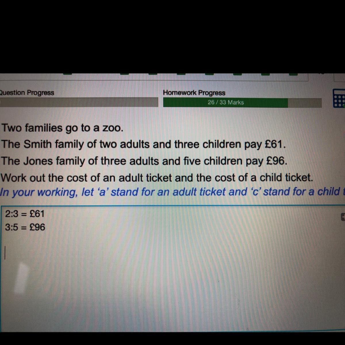 The cost of an adult ticket = £17 and a child's ticket = £9
