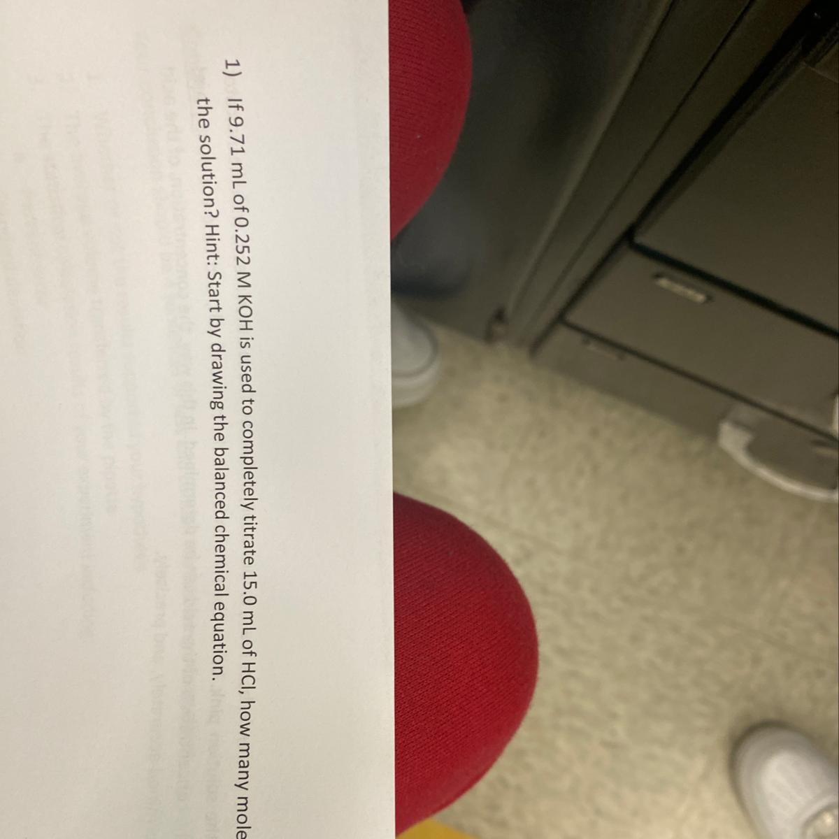 From the equation, 1 mole of KOH reacts with 1 mole of HCl