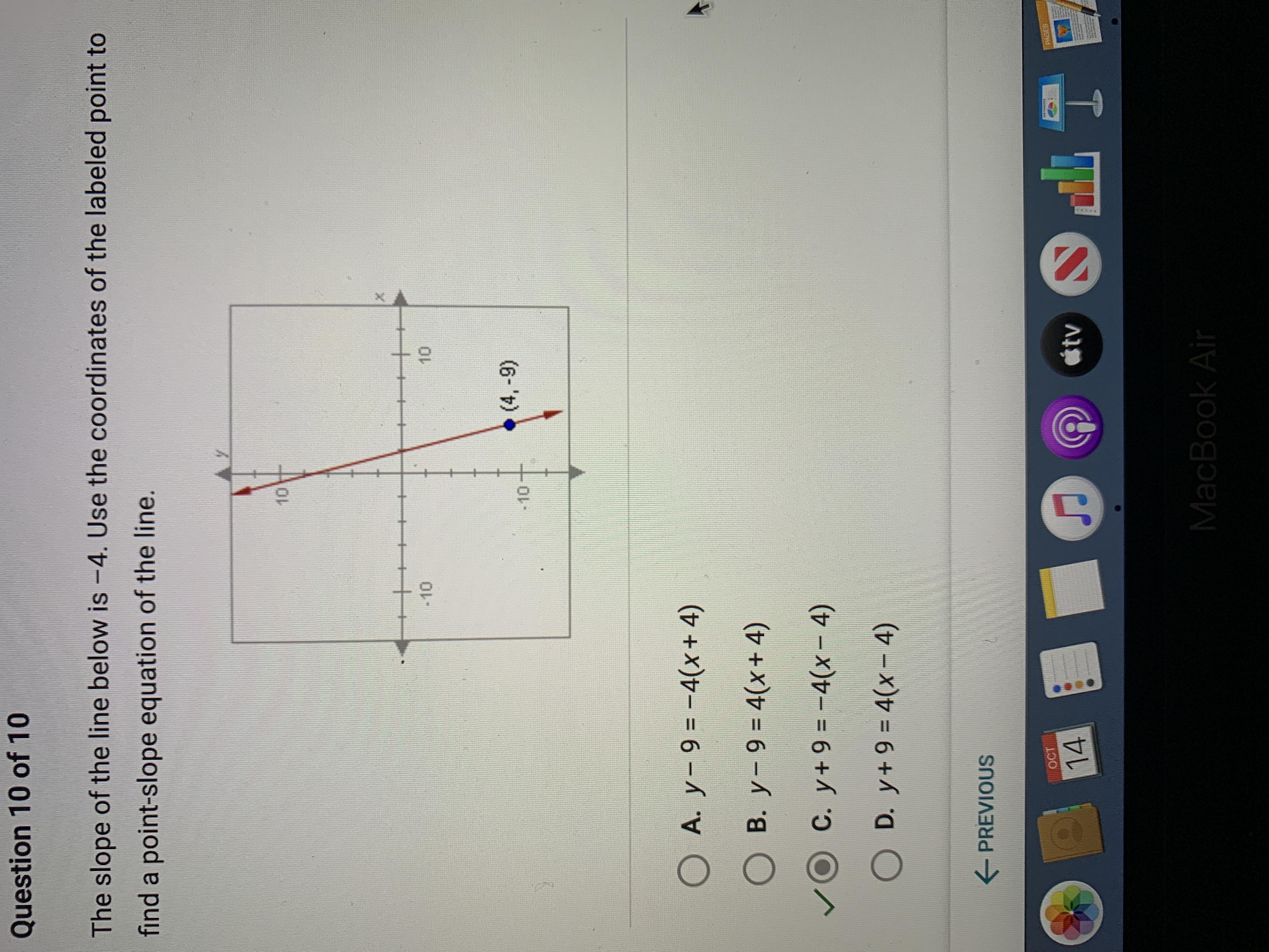 This is definitely not on the line as the value of y gotten does not correlate with what was given