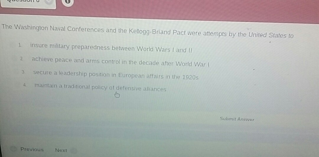 I believe its 2- to keep peace and arms control after the decade of World War 1