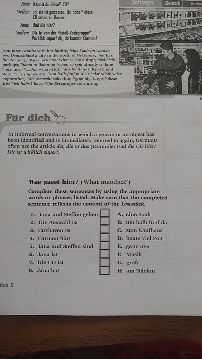 5. Sie spricht am Handy.