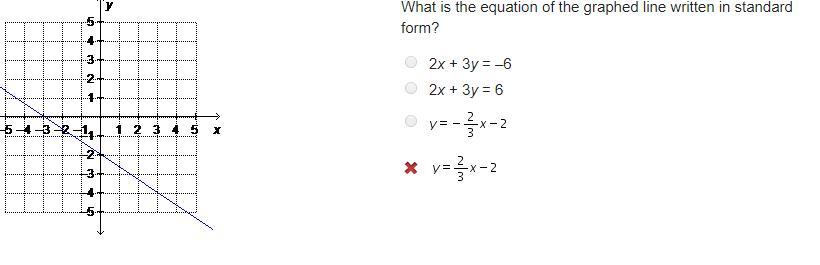 We notice that the 4th equation cannot be correct, because it has a positive slope (2/3), while from the graph we can see that the line has a negative slope.