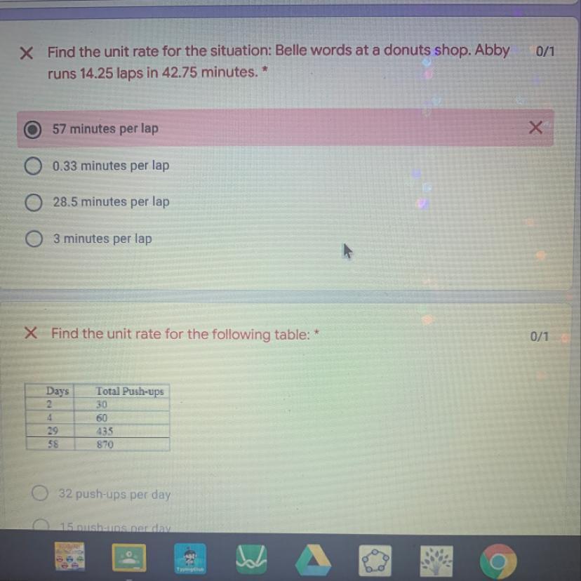 For the other question, it's the same thing; just divide the total push-ups by days, instead of minutes by laps.