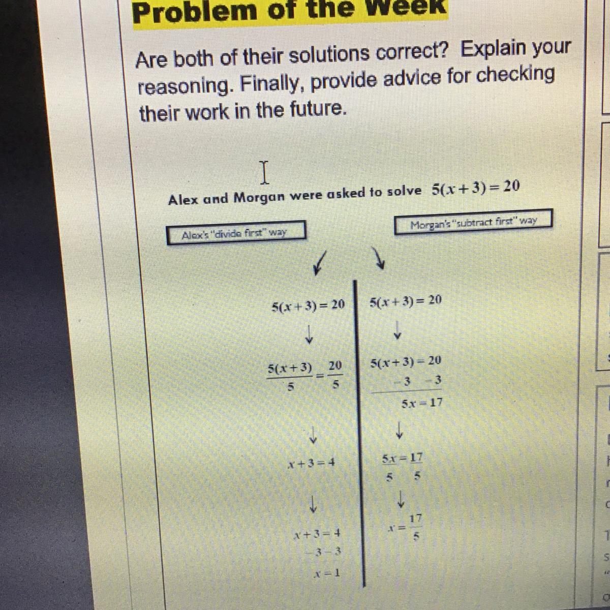 For this problem, we are simply solving for x, and analyzing the results of the two students. First let's solve for x ourselves: