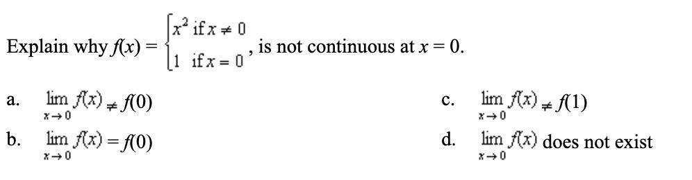 But as , we have yet , therefore is not continuous at . The answer would be A.