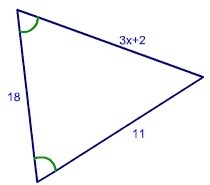 18 is the base of the isosceles triangle, which renders 3x + 2 the same measurement as 11.