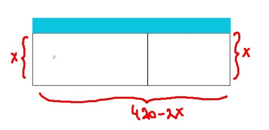 as shown in the figure, let x be the length of the fences perpendicular to the river, then the length of the side opposite to the river will be 420- 2x (yard)