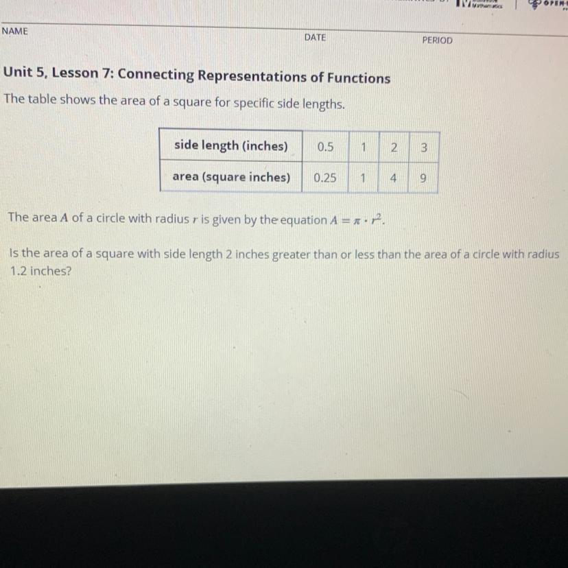 area square inches is less than 1.2