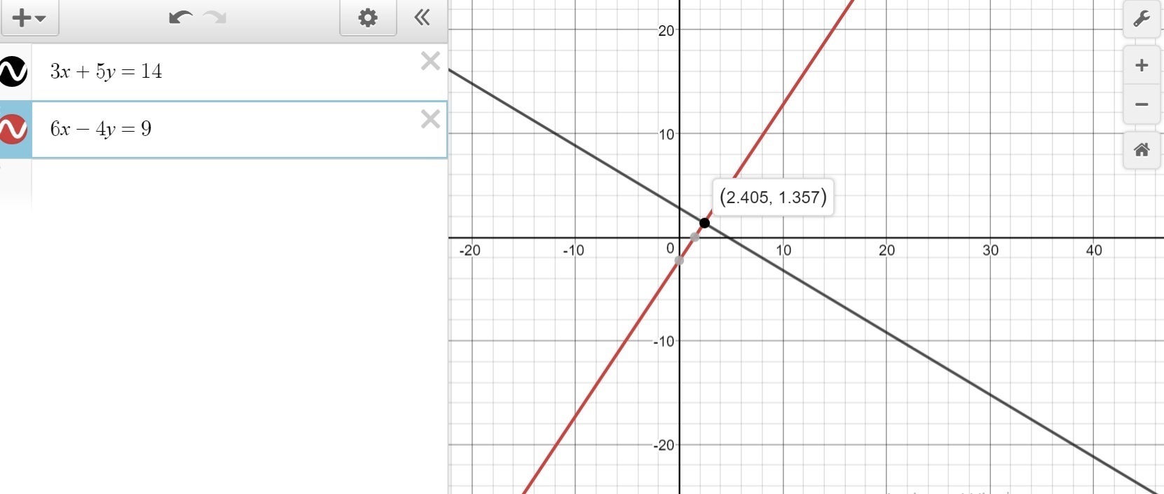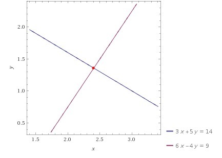 the exact solution is the point (2.41,1.36)