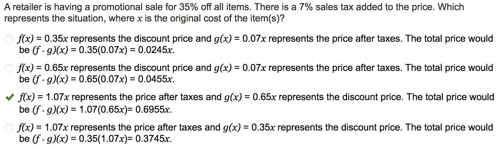 First we obtain the cost of item after the promotional discount is applied