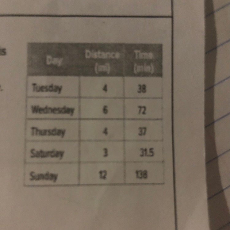 Unit rate is the time taken to run one mile. Here the unit rate is the number of minutes divided by the number of miles for each day.