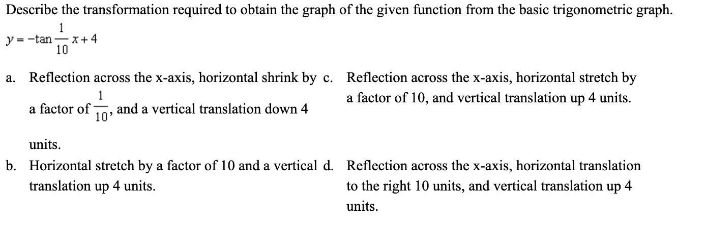 Describe the transformation required to obtain the graph of the given function from the basic trigonometric graph.