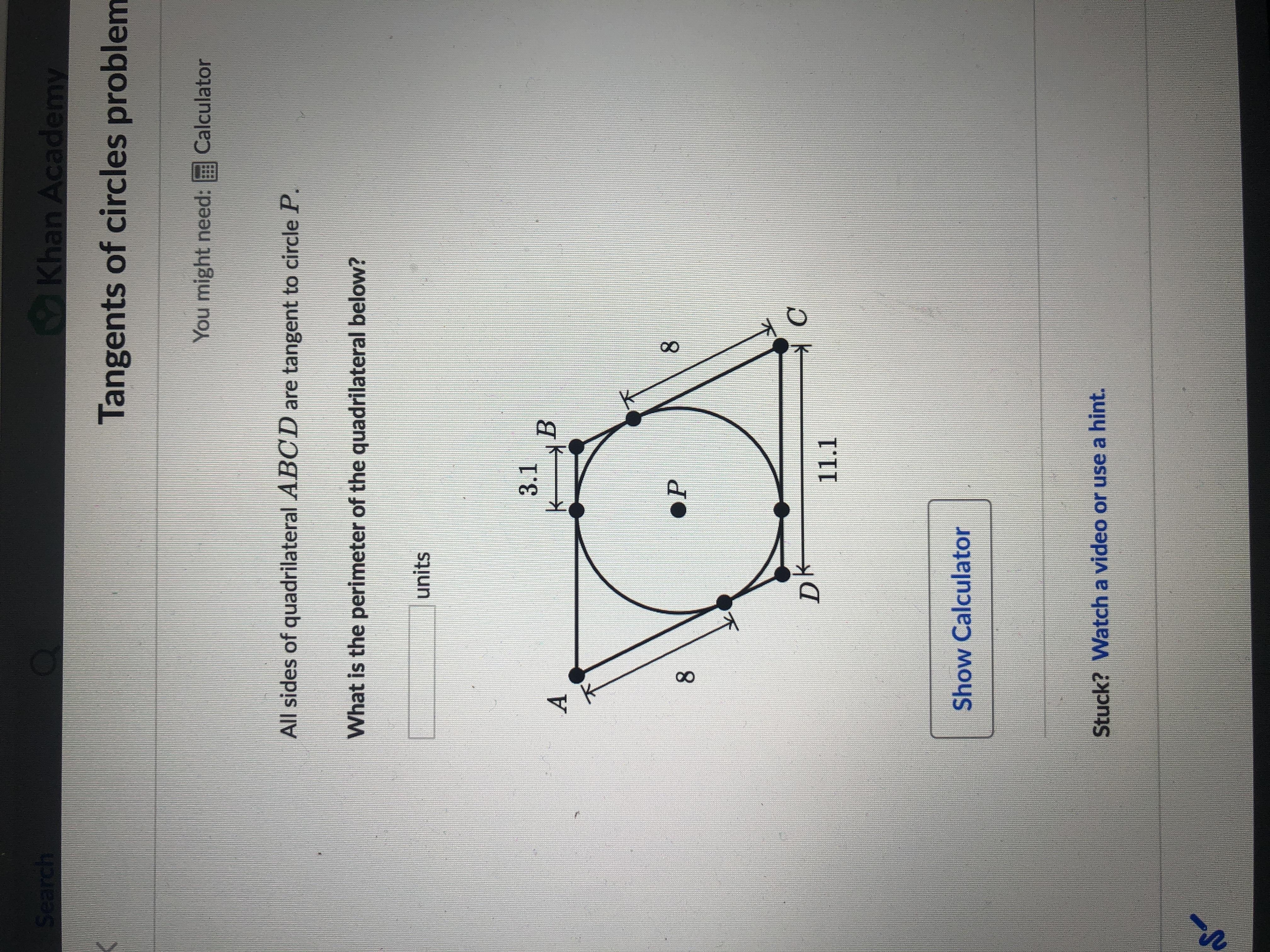 x = 8 inch